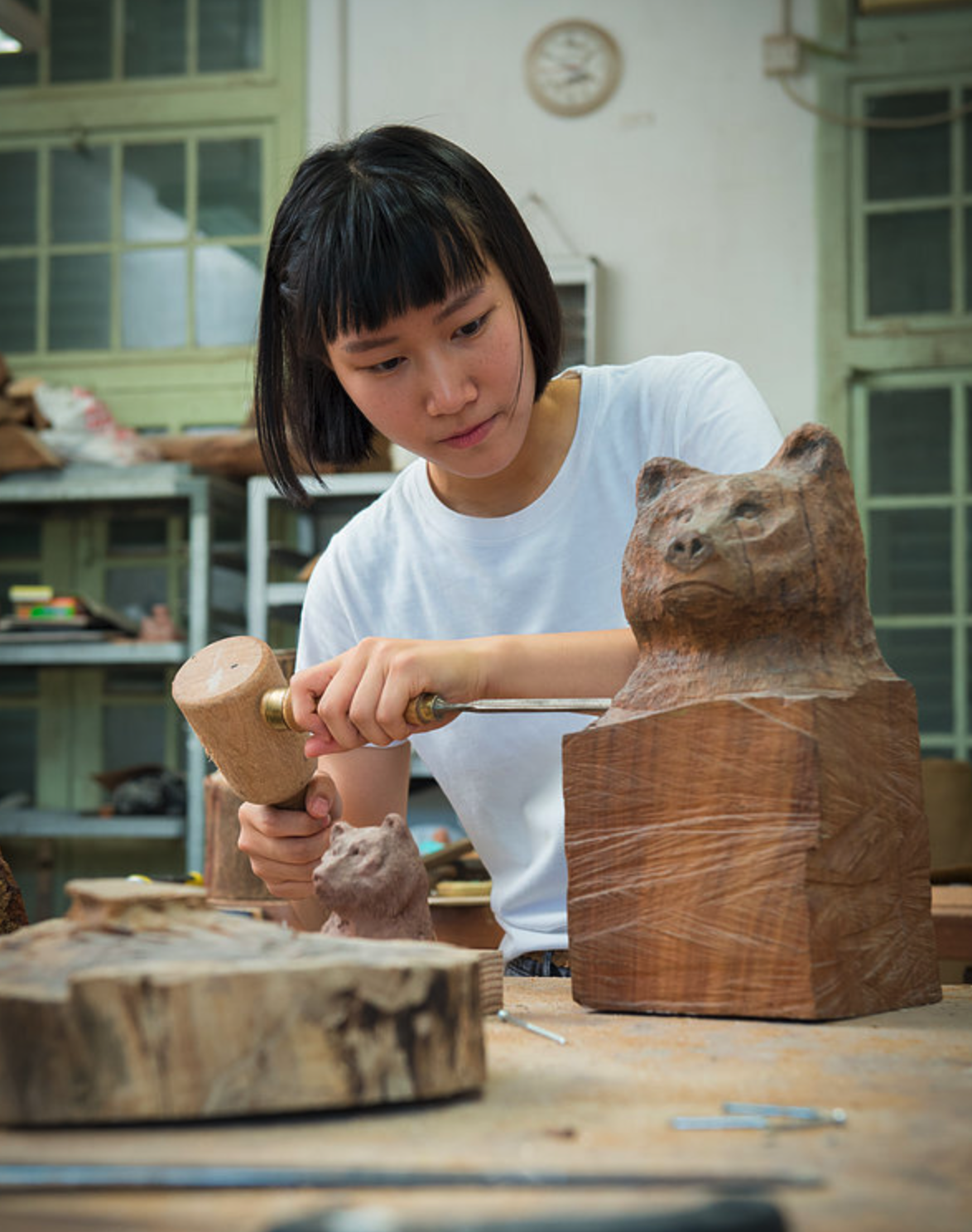 Lo’s enthusiasm of the sculptural figurative form gives rise to her start of modelling and carving three years ago. Gazes and gestures of Lo’s sculptures determine the emotions expressed. Her works bestow senses of peacefulness and vulnerability. Pure and benign living beings are Lo’s favoured personas in her creations.