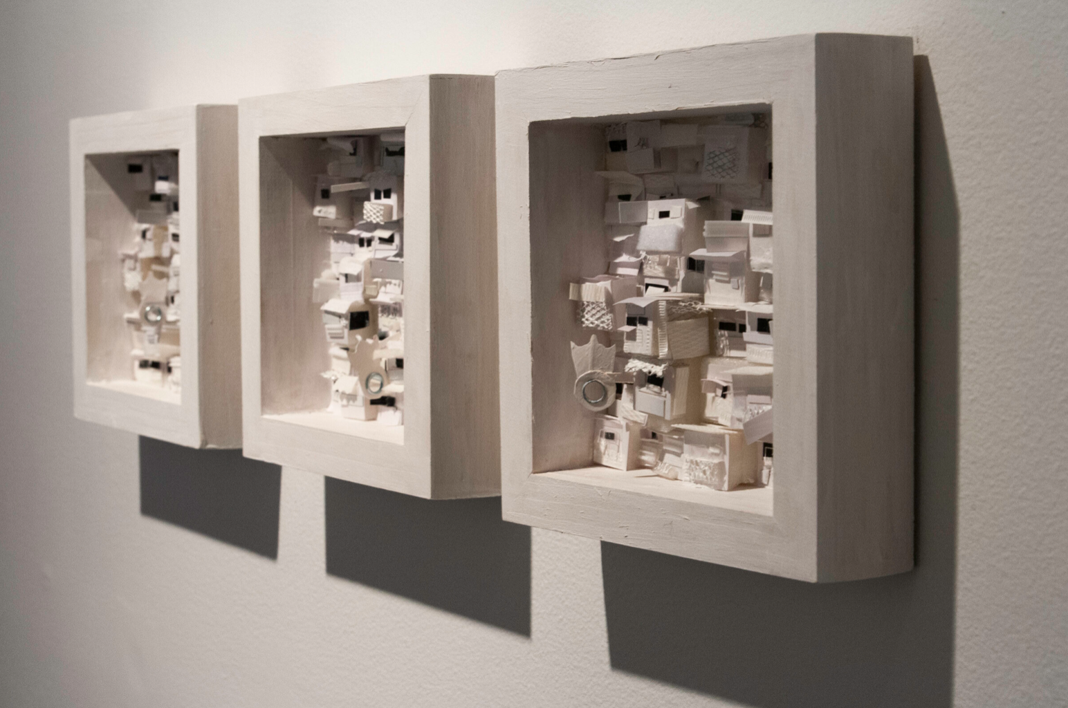 Christy Lo Lok Lam is a multimedia artist whose work deals with different forms of connection while also reflecting on the contemporary world. In the series Within the Boundaries (2020), she continues an investigation started in the Perfect Cube (2016), an installation that collected memories of the neighborhood where she was born and raised through its architecture, taking it to larger discussions about her hometown, Hong Kong. Not being able to return home during the COVID-19 pandemic, Within the Boundaries opens a window that gazes inward in an attempt to capture elements that establish a psychological and emotional bridge with the city of Hong Kong. Reactivating fond memories of its cacophonic streets through façade elements, the artist reflects on the region's recent social and political context. A video that is part of the installation takes her comments even further. As she brings the work throughout different urban spaces in New York, the artist talks about the place this piece represents while also discussing its symbolic features centered on ideas around the color white and notions of boundaries. The object's small dimensions and intricate details reinforce an idea of a precious piece to be held with care. This sense of fragility is reinforced through the use of different papers, some of which are very thin. Alongside this fragility, the use of the color white is no longer symbolic of dreams and pureness but of fear, silence, and uncertainty. Neither a landscape nor portrait, the square format questions how one can break away from boundaries to gain freedom.