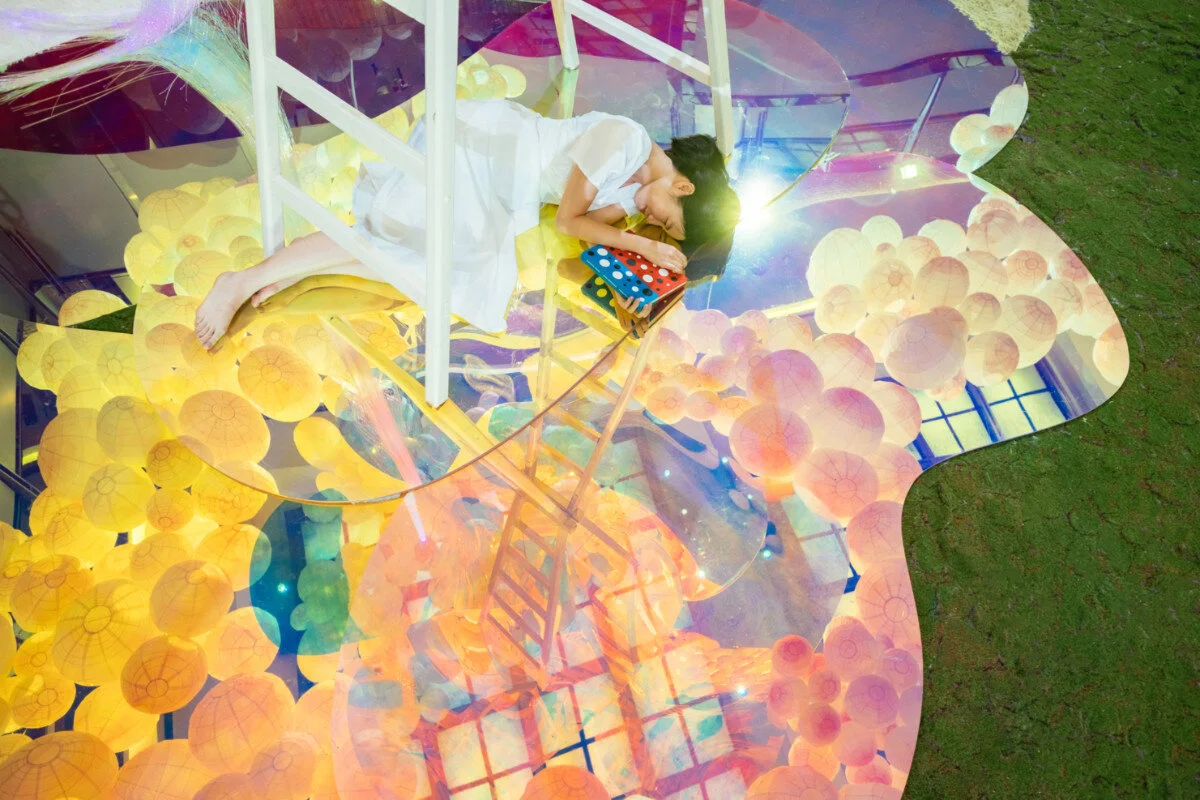 In 2019, every ball in " Curiouser and Curiouser " has its own story on the body, theyrepresent the story of the people living around the Guia. This time, the balls are arranged in acalm way, a sea of clouds, creating a layer, a layer that Alice wants to breakthrough.Alice's story is to encourage readers to stay curious and continue exploring explorationin their world or their mind. This time, from the first floor, the installation could be seen as thesea of clouds formed by woodblock prints and traditional Mid-Autumn Festival lanterns, but theaudience will also be able to see a long ladder penetrating the clouds from the below to the sky.